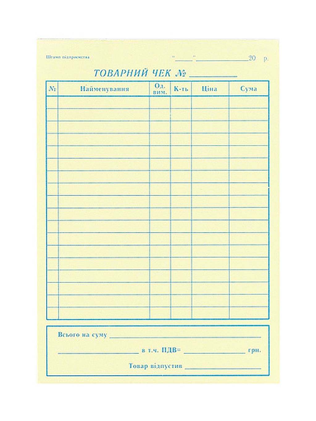 Чек товарний А6 1+0 100шт офсет