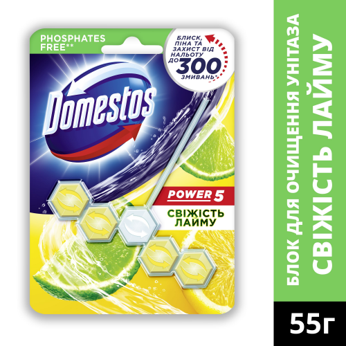 Туалетні блоки для унітазу Power 5 Свіжість лайму 55г DOMESTOS
