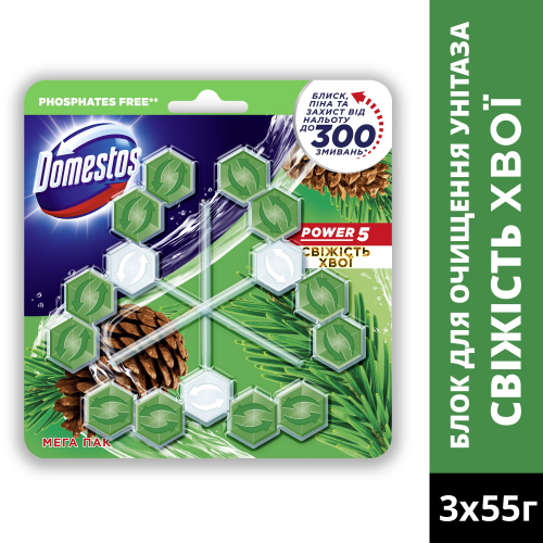 Туалетні блоки для унітазу Power 5 Тріо Свіжість хвої 3х55г DOMESTOS