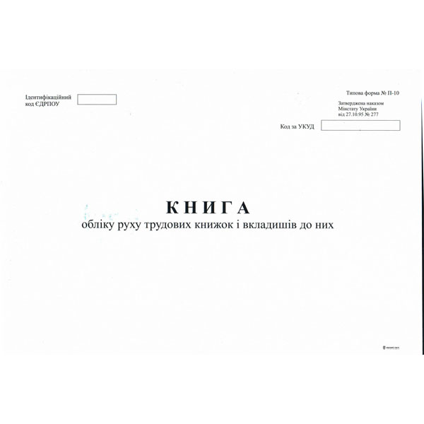 Книга обліку руху трудових книжок та вкладишів до них, 48 аркушів, офсет, м'яка обкладинка (форма П-10)