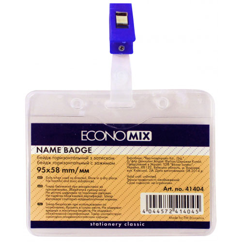Бейдж горизонтальний із кліпом 95х58мм, E41404, ECONOMIX