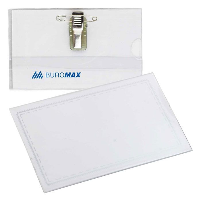 Бейдж горизонтальний, з прищіпкою та шпилькою, 90*55мм, BUROMAX
