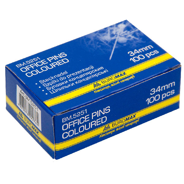 Булавки офісні 34мм, 100шт, BUROMAX