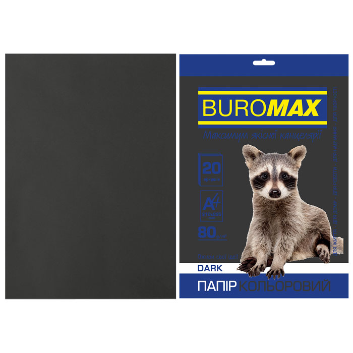 Папір кольоровий А4 80 г/м2 20 аркушів чорний, Dark, BUROMAX