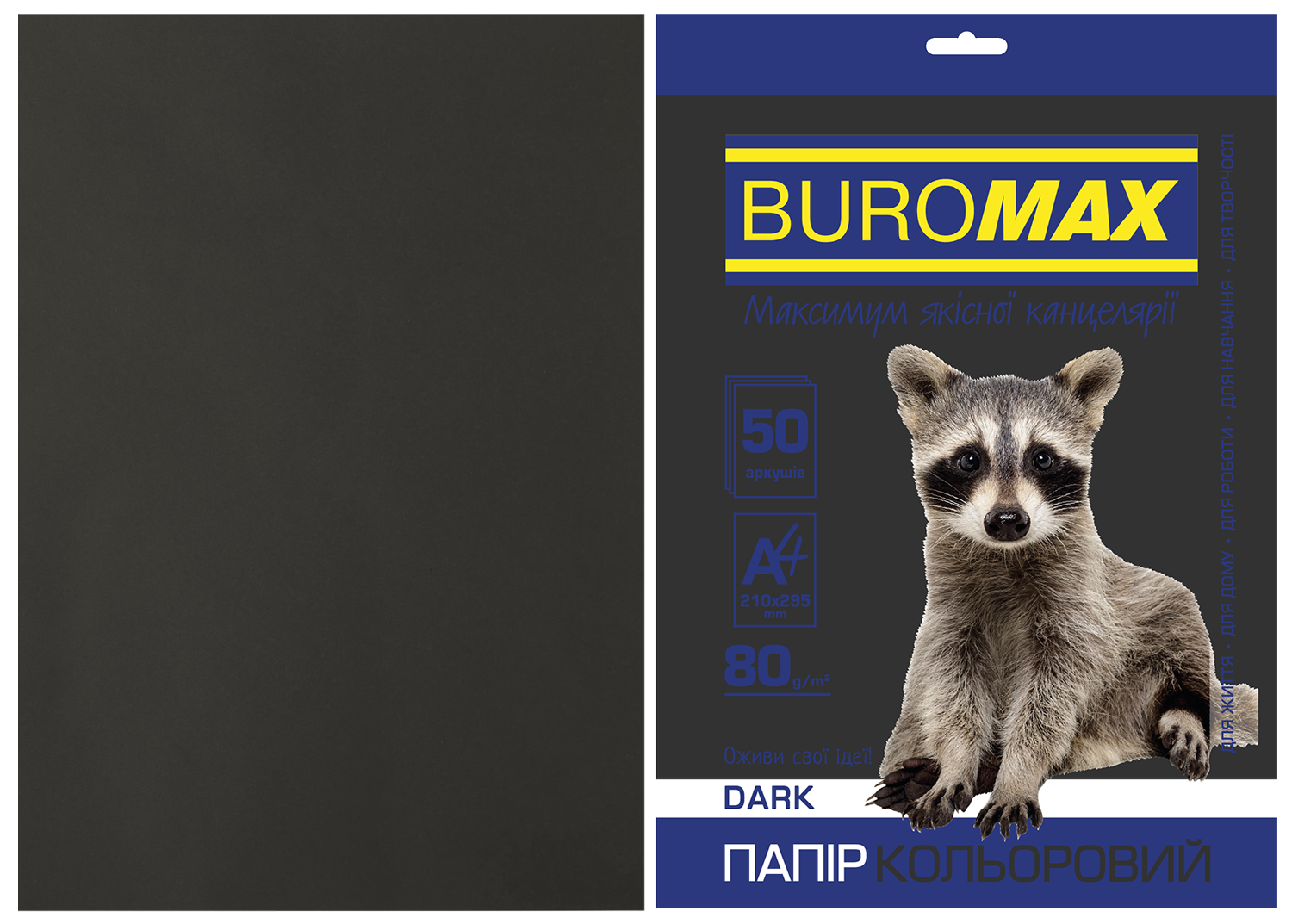 Папір кольоровий А4 80 г/м2 50 аркушів чорний Buromax Dark