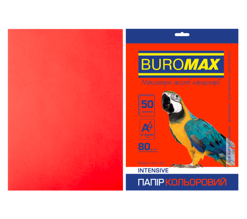 Папір кольоровий А4 80 г/м2 50 аркушів інтенсив червоний BUROMAX