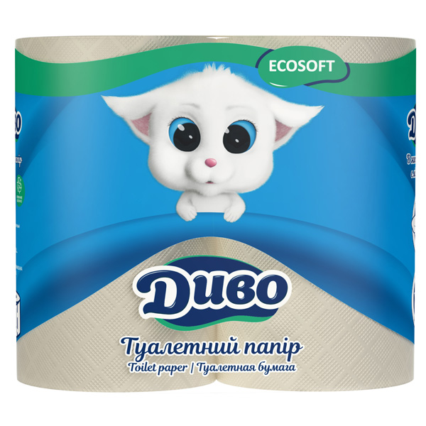 Папір туалетний рулонний 2-шаровий, макулатурний, на гільзі, 4 шт., сірий, ДИВО