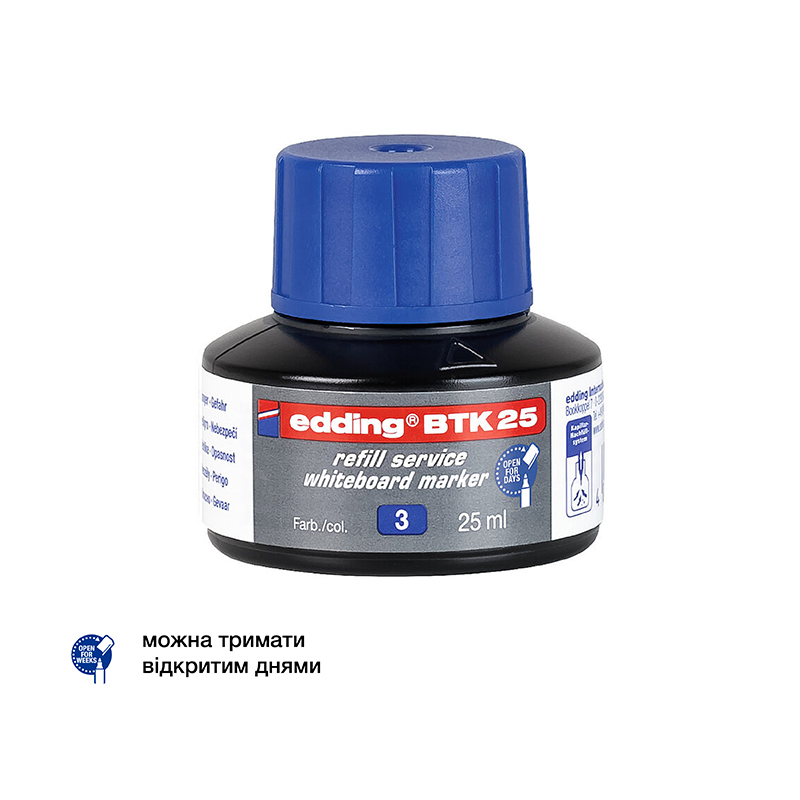 Чорнило для заправки сухостираних маркерів 25мл, e-BTK25, синє EDDING