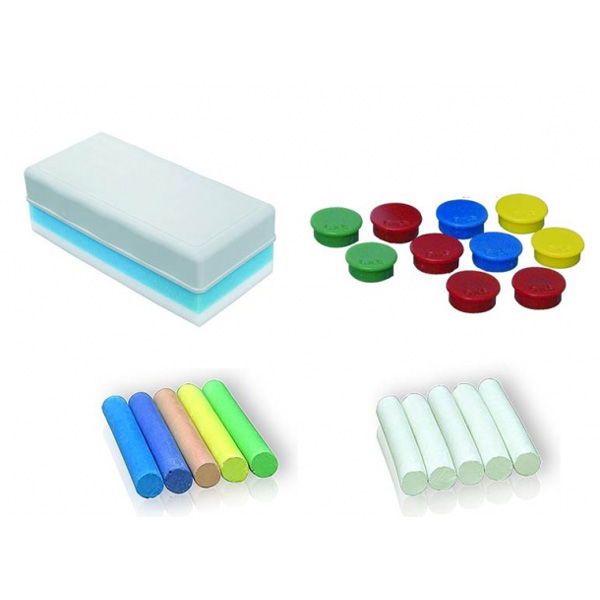 Набір для крейдових дошок: губка для стирання, магніти 10 шт. (асорті), 2 комплекти крейди - кольоровий (10 шт.) білий (10 шт.), 2Х3