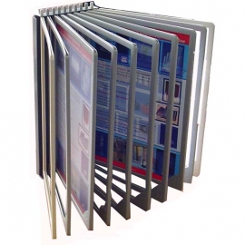Дисплей-система настінна з 10 панелями A4 з протекторами, металева основа, пластикові рамки