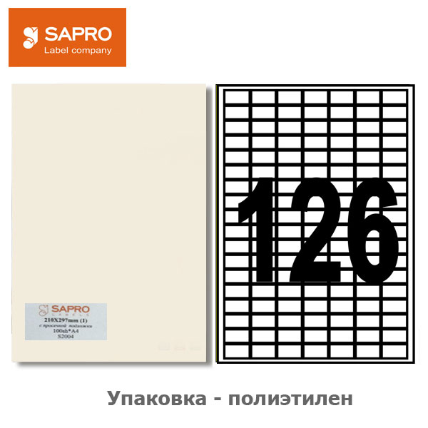 Етикетки самоклеючі А4 126 шт./арк., 28*16мм, 100 арк., SAPRO LABELS