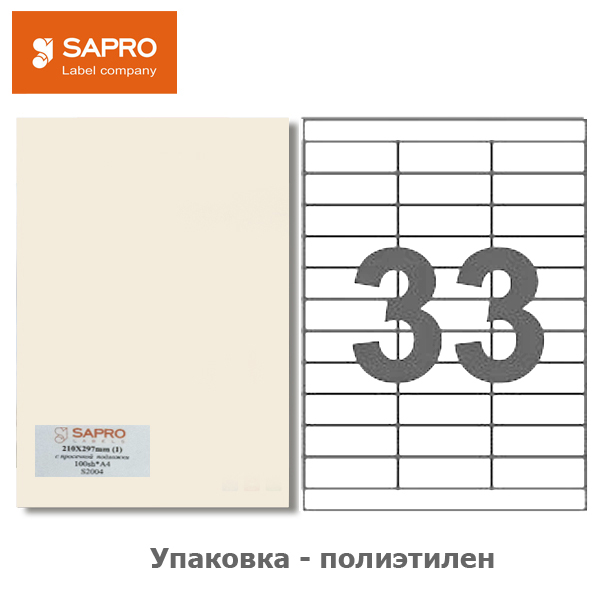 Етикетки самоклеючі А4 33 шт./арк., 70*25,4мм, 100 арк., SAPRO LABELS