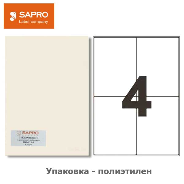 Етикетки самоклеючі А4 4 шт./арк., 105*148,5мм, 100 арк., SAPRO LABELS