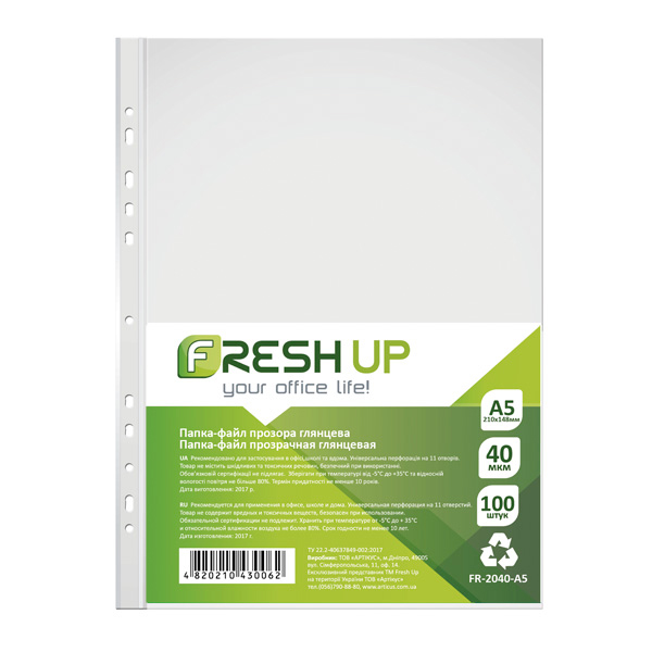 Файли А5, 40мкм, 100шт/пач, FR-2040-А5, FRESH UP