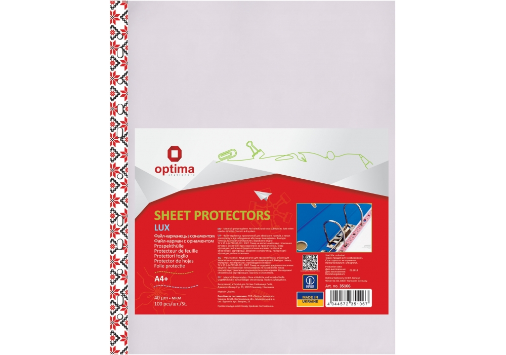 Файли А4, 40мкм, 100шт/пач, із кольоровим орнаментом, OPTIMA