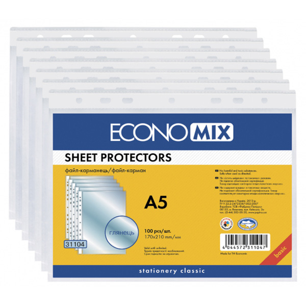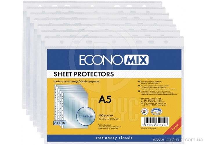 Файли А5, 30мкм, 100шт/пач, ECONOMIX