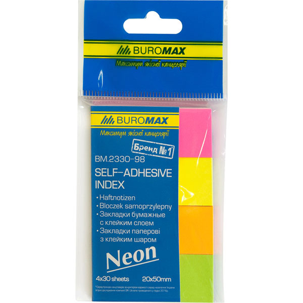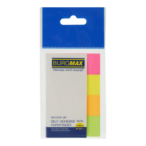 Індекси паперові 50х20мм Прямокутні, 4 кольори по 30 арк., неон, BUROMAX