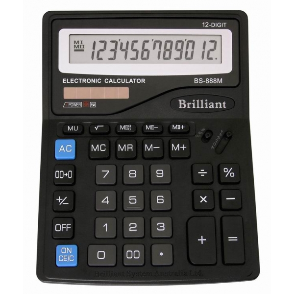 Калькулятор настільний 12-розрядний, дворівнева пам'ять, 2 джерела живлення, 158х200х46, BS-888M, BRILLIANT