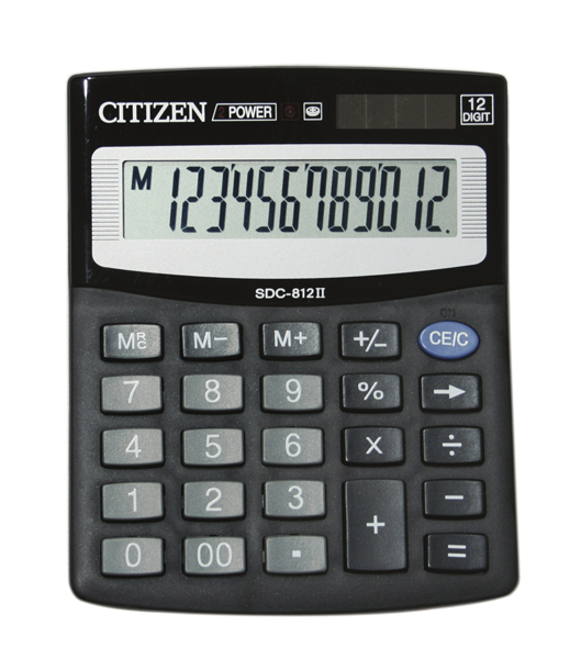 Калькулятор настільний 12-розрядний, однорівнева пам'ять, 2 джерела живлення, 100х125х34, SDC-812NR, CITIZEN