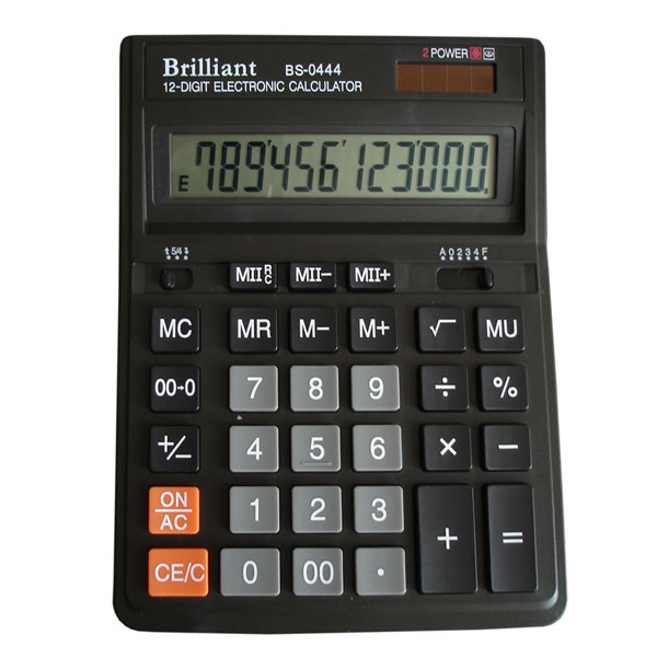 Калькулятор настільний 12-розрядний, дворівнева пам'ять, 2 джерела живлення, 153x199x31, BS-0444, BRILLIANT