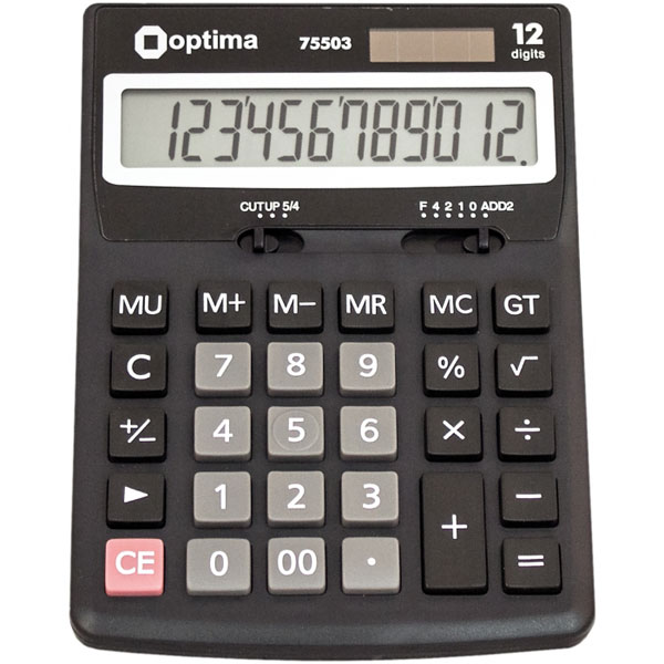 Калькулятор настільний 12-розрядний, однорівнева пам'ять, 2 джерела живлення, 170x122x32, O75503, OPTIMA