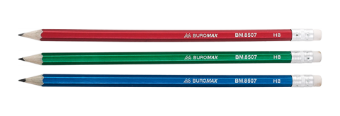 Олівець графітний з гумкою HB, шестигранний корпус, асорті металік, туба, BUROMAX