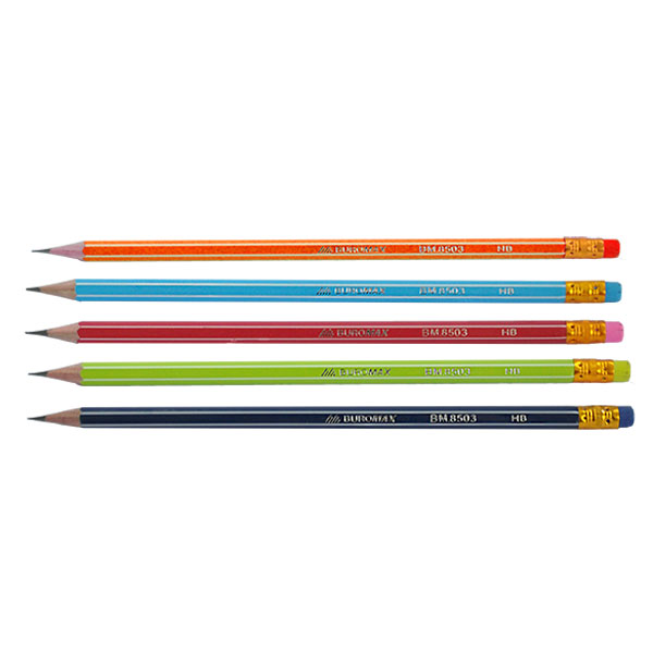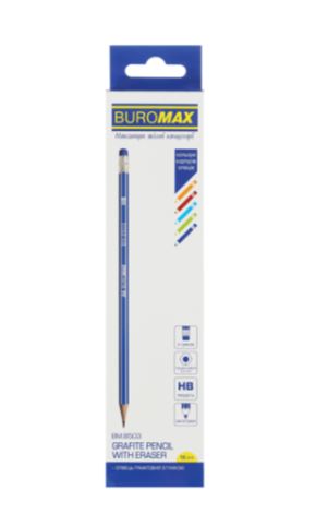 Олівець графітний з гумкою HB WHITE LINE, шестигранний корпус, асорті, BUROMAX