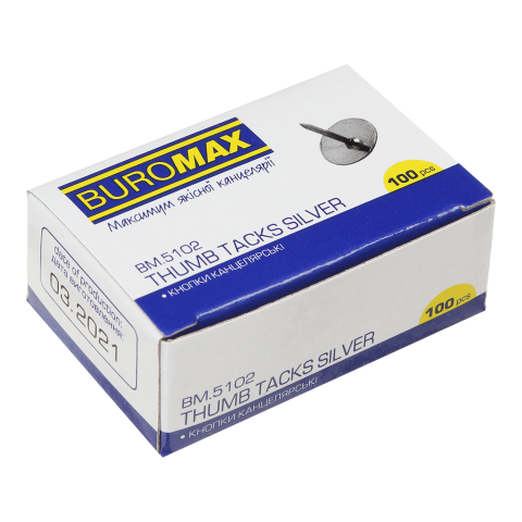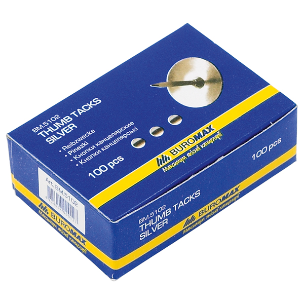 Кнопки нікельовані, картонна коробка 100шт, BUROMAX