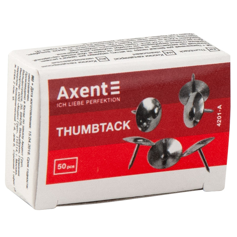 Кнопки-гвоздики кольорові, пластиковий бокс 50шт., AXENT