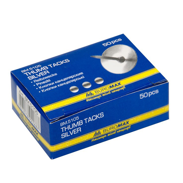 Кнопки нікельовані картонна коробка, 50шт, BUROMAX