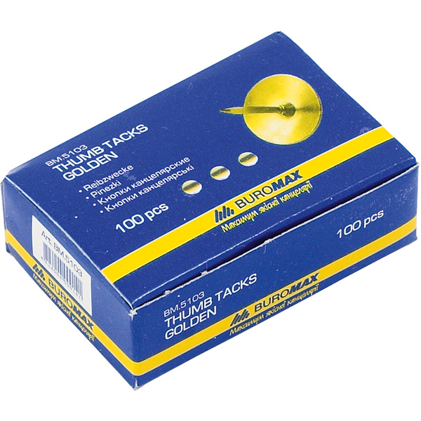 Кнопки золотаві, картонна коробка 100шт, BUROMAX