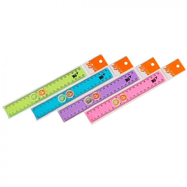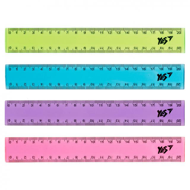 Лінійка пластикова 20 см, кольорова, прозора, YES