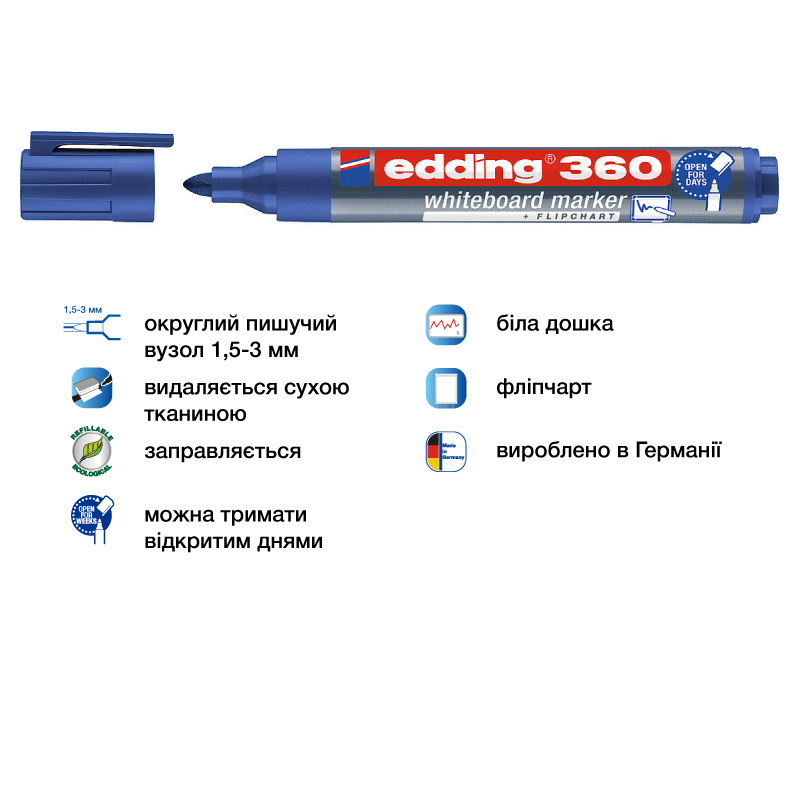 Маркер для дошок 1,5-3 мм кулеподібний, синій, E360 EDDING