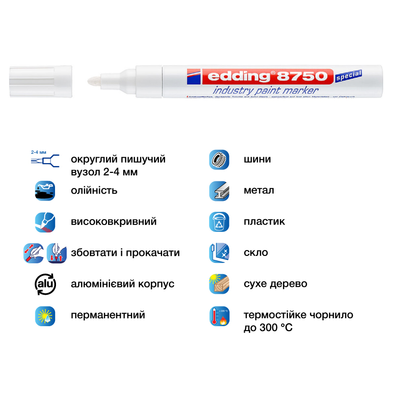 Маркер промисловий 2-4 мм PAINT, від -30°С до +30°С, білий, Е-8750 EDDING