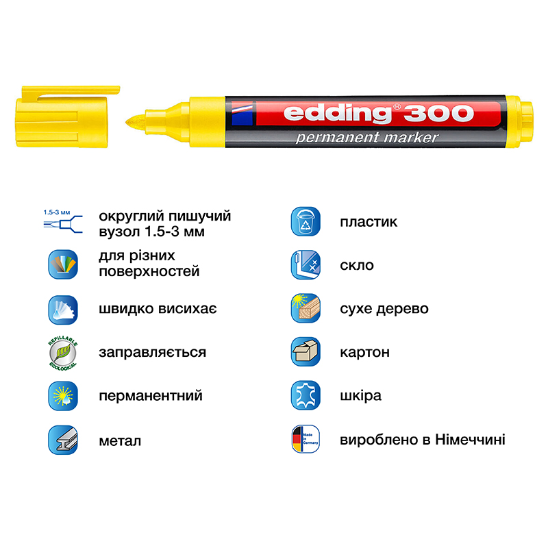 Маркер перманентний 1,5-3 мм, кулеподібний, жовтий, Е300 EDDING