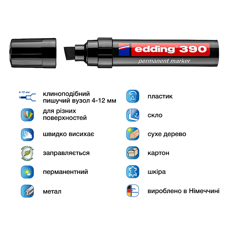 Маркер перманентний 4-12 мм, клиноподібний, чорний, Е390 EDDING
