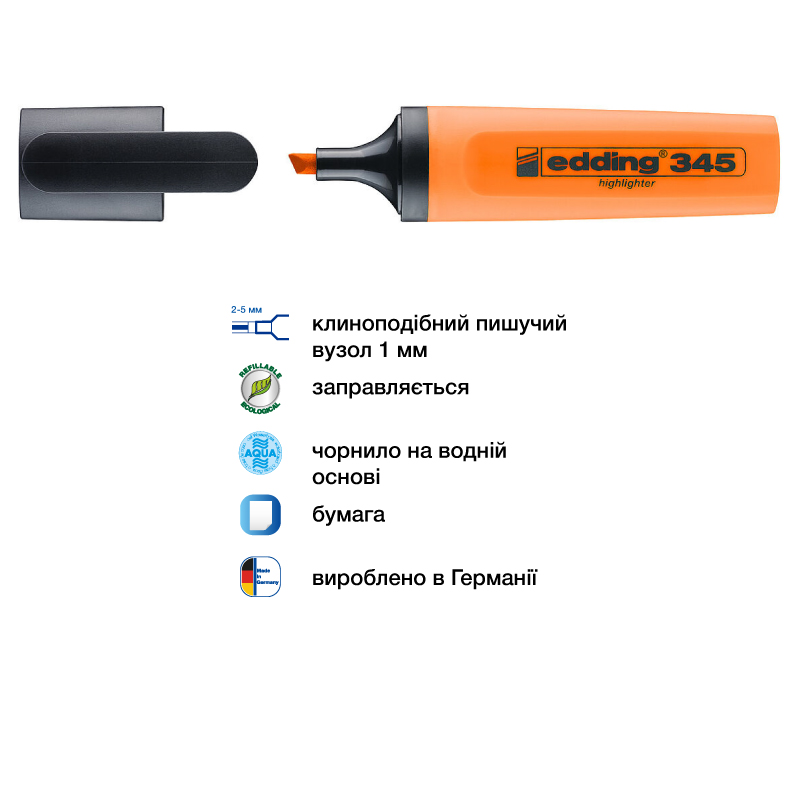 Маркер текстовий 2-5 мм Highlighter E345, помаранчевий, 01687 EDDING
