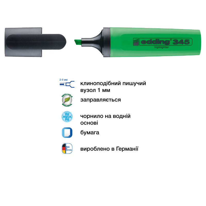 Маркер текстовий 2-5 мм Highlighter E345, зелений, 01685 EDDING