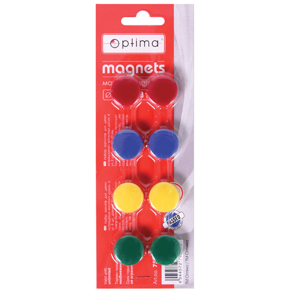 Набір магнітів для дошок d-20 мм, 8 шт., колір асорті, O75311 Optima