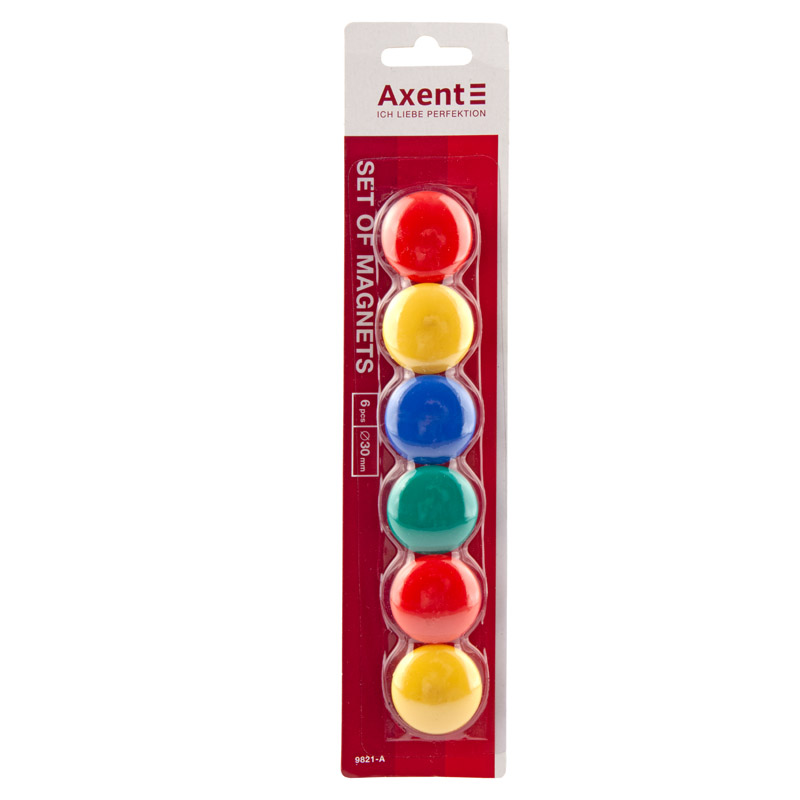 Набір магнітів для дошок d-30мм, 6 шт., колір асорті, 9821-A Axent