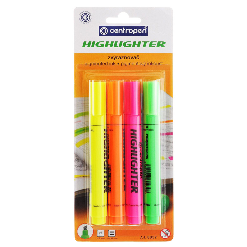 Набір маркерів текстових 1-4,6 мм клиноподібних, 4 кол., в блістері, 8852 CENTROPEN
