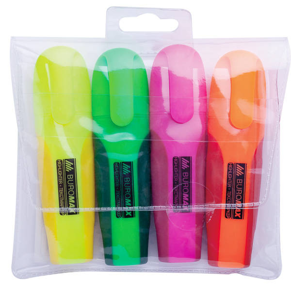 Набір текстових маркерів 2-4 мм, і з гумовими вставками, 4 кольори, BM.8904-84 BUROMAX