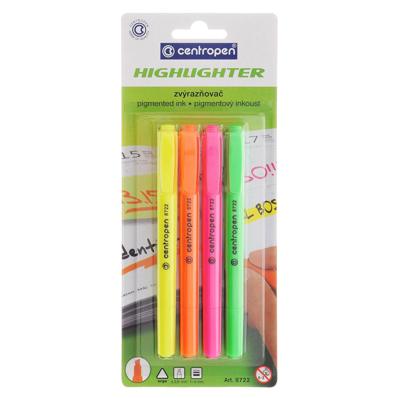 Набір текстових маркерів 1-4 мм FAX, 4 кольори, 8722/4, CENTROPEN