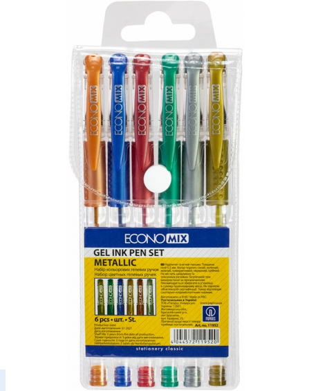 Набір ручок гелевих 0,5 мм Metallic, 6 кол., ECONOMIX