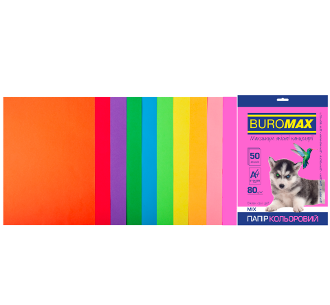 Набір кольорового паперу А4 80 г/м2 50 аркушів Neon+Intensive BUROMAX (10 кольорів)