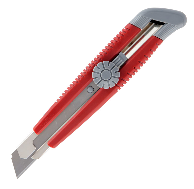 Ніж канцелярський 9 мм, металева направляюча, +2 леза, корпус червоно-сірий, AXENT