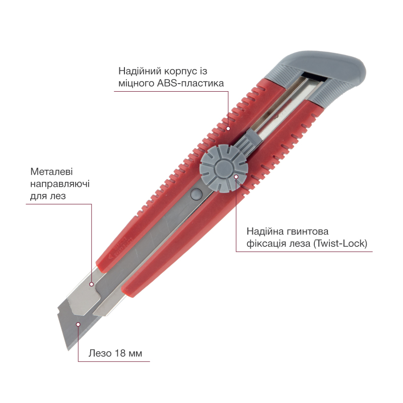 Ніж канцелярський 18 мм, металева направляюча, Twist-Lock (колесо) AXENT