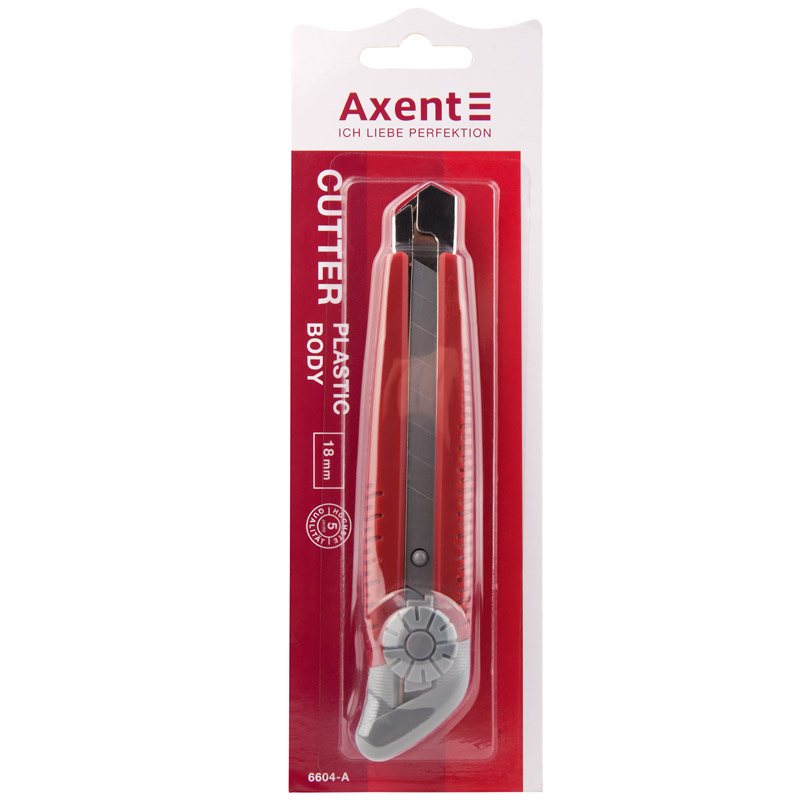 Ніж канцелярський 18 мм, металева направляюча, прогумований +2 леза, корпус червоно-сірий, AXENT