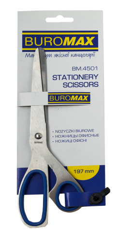 Ножиці канцелярські 19,7см, суцільнометалеві, ручки з прогумованими вставками, сині, BUROMAX