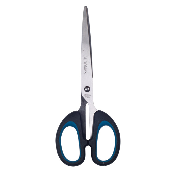 Ножиці канцелярські 20,7см, пластикові ручки з прогумованими вставками, Jobmax, BUROMAX
